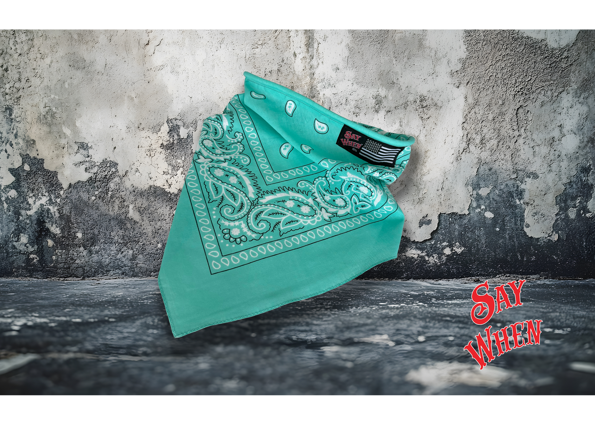 100% cotton bandana, single layer. Velcro closure. Made in USA.